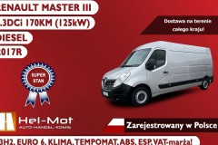 Mam na sprzedaż samochód dostawczy - ciężarowy Renault Master III z 2017 roku, zarejestrowany w Polsce - Polski Salon. Silnik wysokoprężny o pojemności 2299ccm i mocy 170KM z manualną, 6-cio stopniową skrzynią biegów. Istnieje możliwość zakupu na kredyt, szczegóły poniżej. Więcej informacji udzielę telefonicznie.