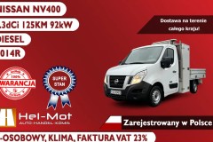 Mam na sprzedaż samochód dostawczy - ciężarowy Nissan NV400 z 2014 roku, zarejestrowany w Polsce. Silnik wysokoprężny o pojemności 2299ccm i mocy 125KM z manualną 6-cio stopniową skrzynią biegów. Auto ładne, czyste, zadbane. Istnieje możliwość dokupienia gwarancji, oraz zakupu na kredyt, szczegóły poniżej. Więcej informacji udzielę telefonicznie.